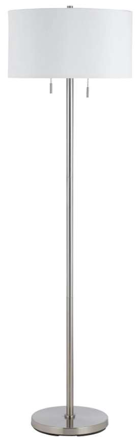 This Floor Lamp from Calais collection features in double bulb socket, pull chain switch, spider type shade and comes in 59" height metal floor lamp in brushed steel. Elevate your design with this eye-catching piece.Read More