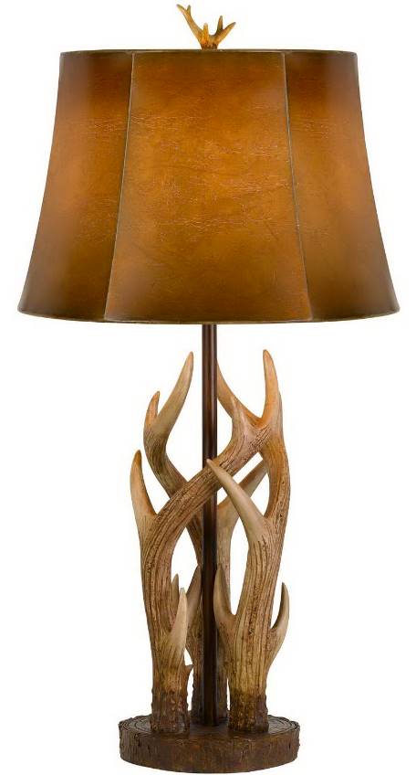 150W 3 way Darby antler resin table lamp with leathrette shade