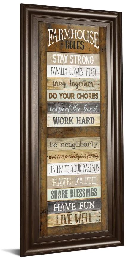 Whether you're a Nancy Fuller fan or not, these country farming morals are hard to beat. Include them into your everyday living with this sweet picture print. This wall art framed in cinnamon mocha.Read More