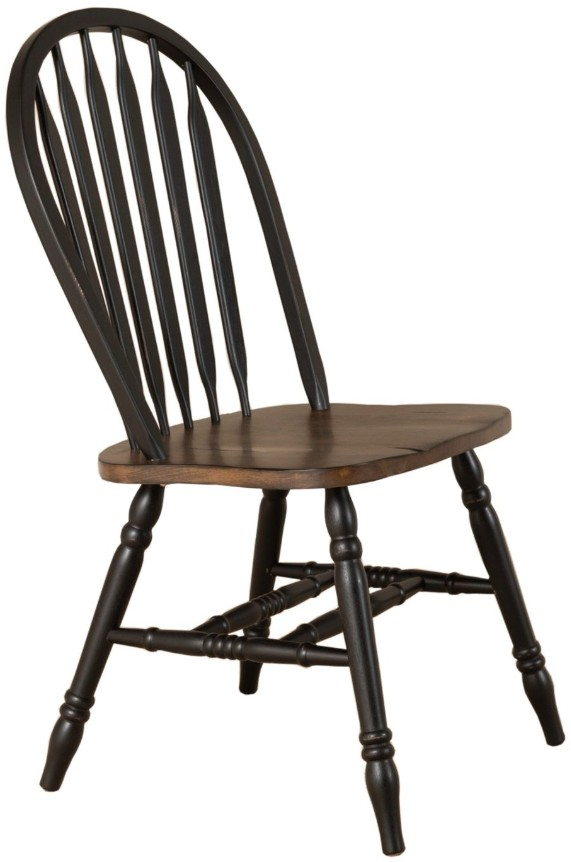 Sit in comfort and style with the Carolina Crossing Windsor side chair in black. Crafted of rubberwood solids, this piece features a two-toned black and honey finish, nylon chair glides to protect your flooring, and is anchored by turned splayed legs.Read More