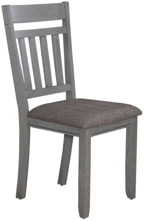Sit in comfort and style with the Newport splat back side chair. Crafted with excellence using rubberwood solids, this chair features a smokey gray finish and an upholstered seat in gray linen fabric. The square tapered legs have nylon chair glides to protect your flooring.Read More