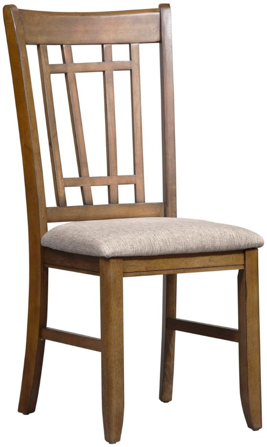 Sit in comfort and style with the Santa Rosa II lattice back side chair. Crafted of rubberwood solids and oak veneers, this piece features a lattice wood back with an upholstered seat in a textured linen, nylon chair glides to protect your flooring, and is anchored by beautifully tapered legs.Read More
