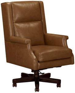 Wrapped in custom-matched top-grain leather, this executive chair strikes a balance between luxury and performance, featuring a 360-degree swivel, smooth tilting recline, and air-lift height adjustment. Designed for all-day comfort with a structured bustle back, padded key arms with self-welting, and a removable 2.2-density foam seat cushion.Read More